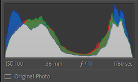 Unfortunately, as you can see quite plainly, the lighting situation on the entire scene was suboptimal when I took the photo. Aside from the bright white clouds and very dark shadows, the majority of the image is particularly flat tonally. I’ve posted the panorama’s histogram here, which clearly indicates with mocking bimodal peaks that the panorama is rich in shadows and highlights with virtually no midtones. As I’ve found out the hard way recently, that tone distribution is very difficult to work with. As of this post, I’m up to five attempts on editing the panorama… and will probably be on attempt six soon.